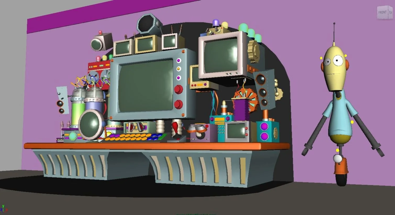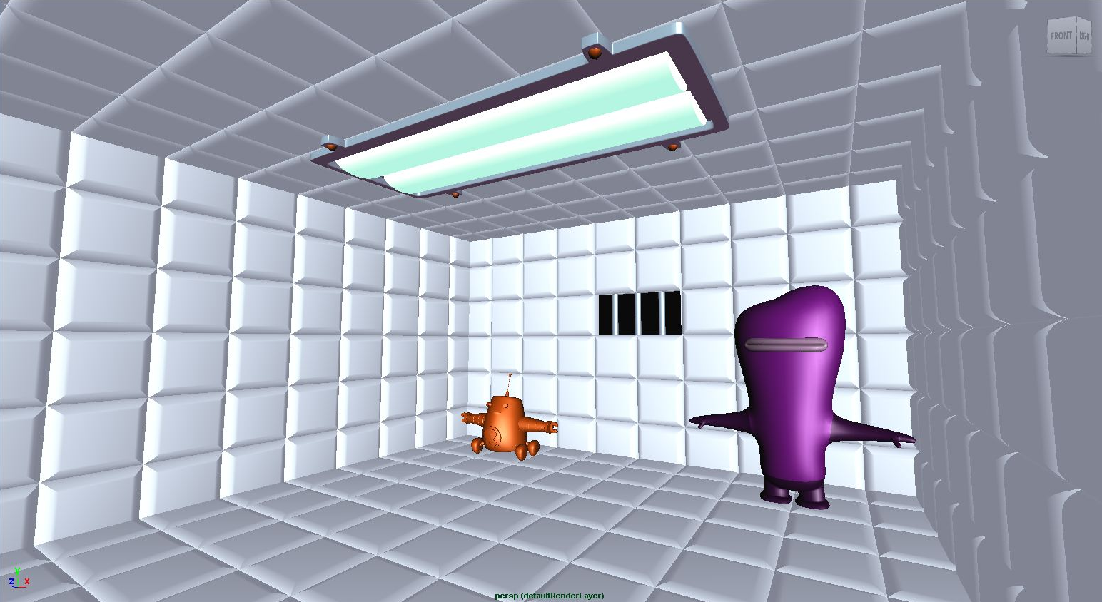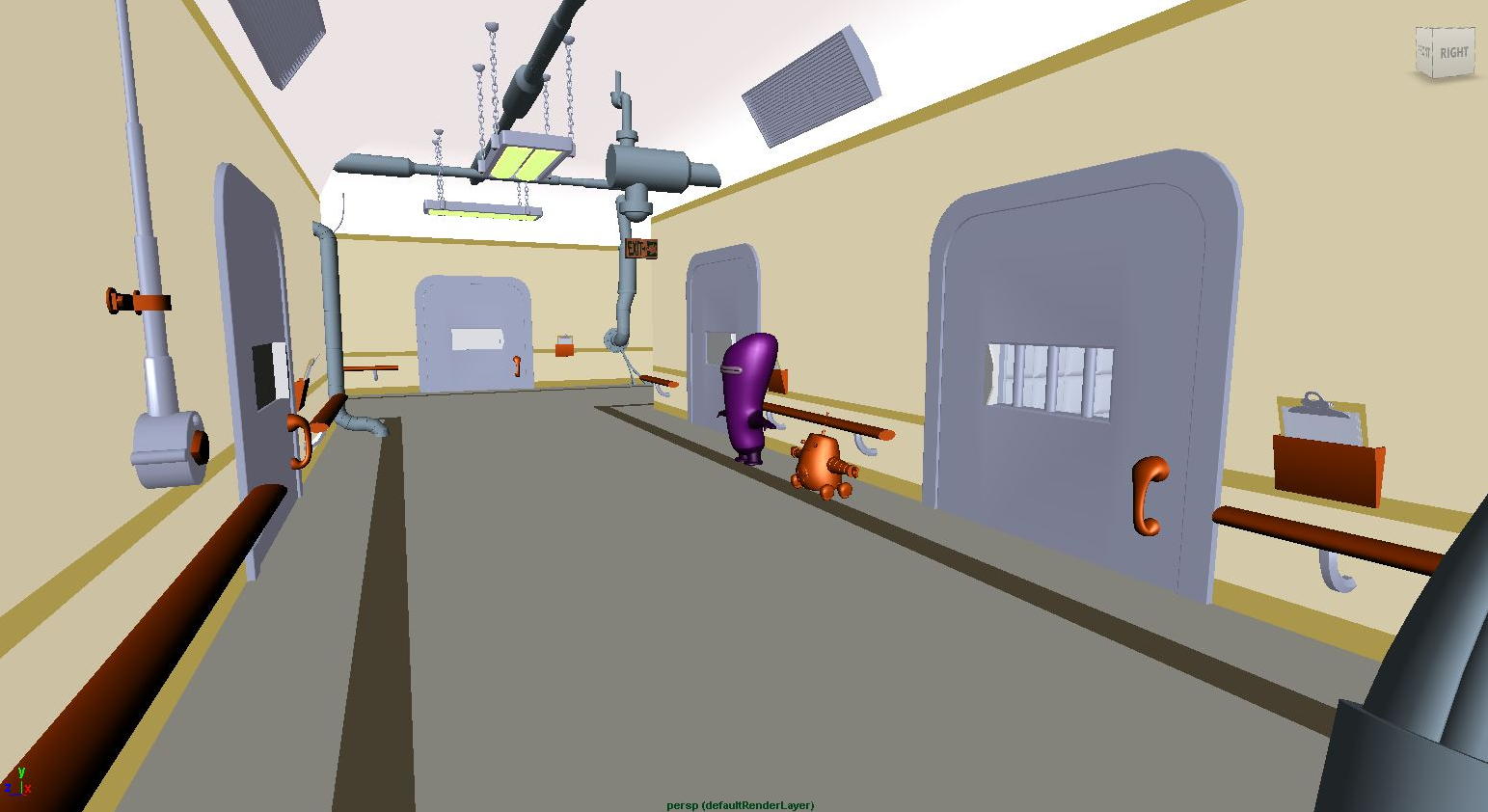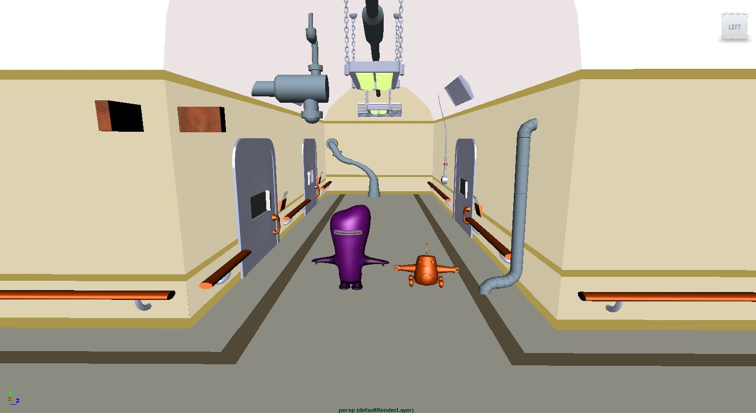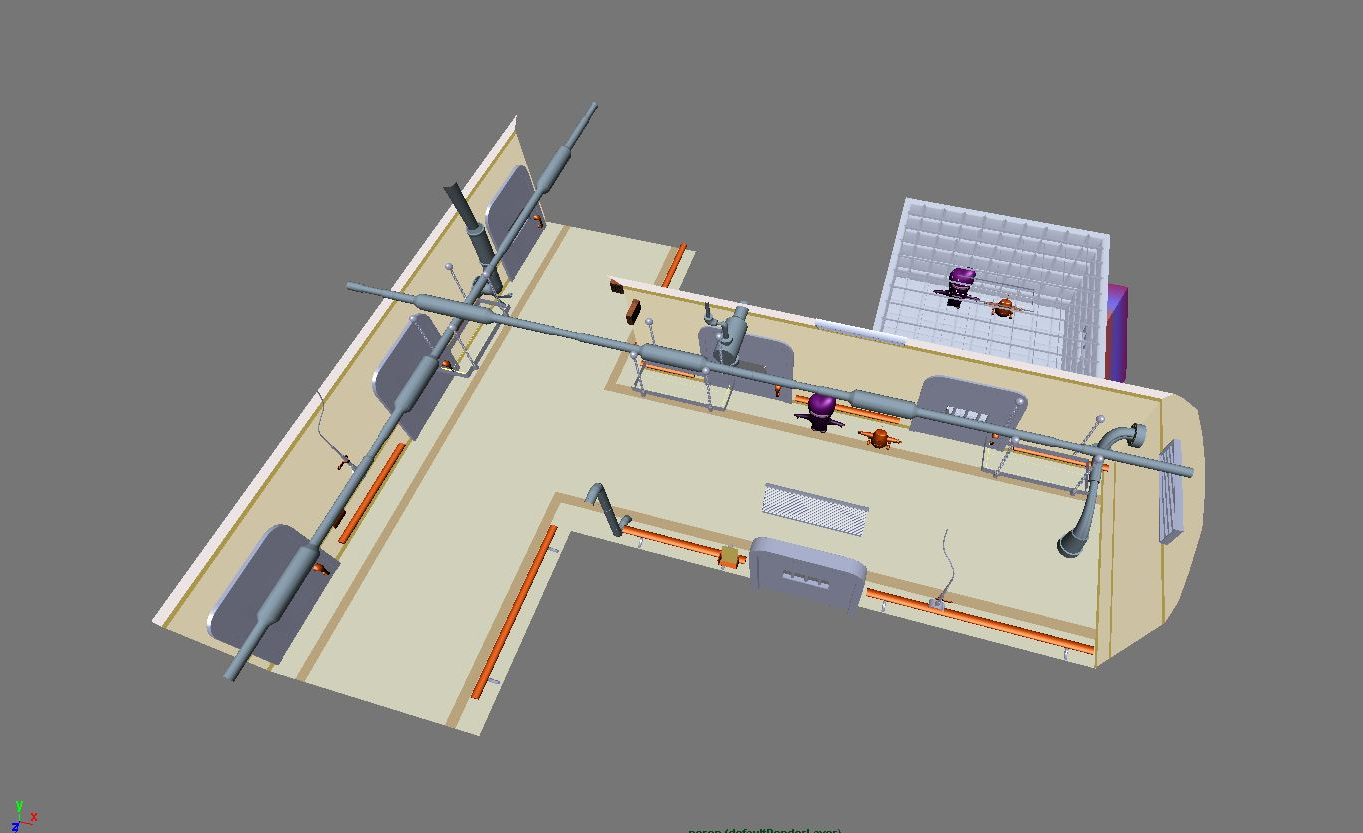 These are quickly built, low-poly models based on 2D designs that use a mixture of new and existing geometry that bridge the gap between concept art and the final 3D set.