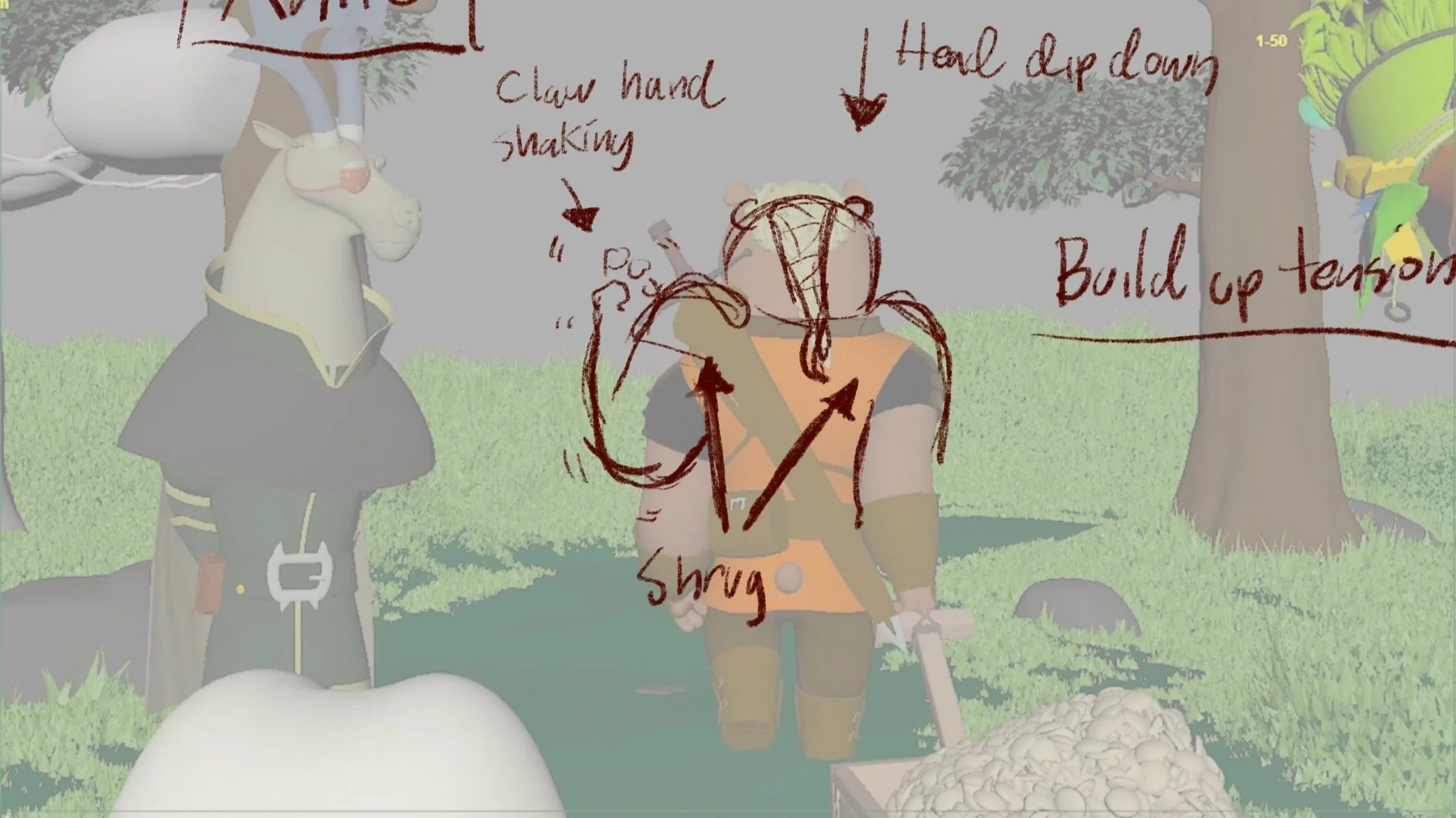 Examples drawovers with notes to clarify performances, boost emotional impact, and strengthen storytelling.